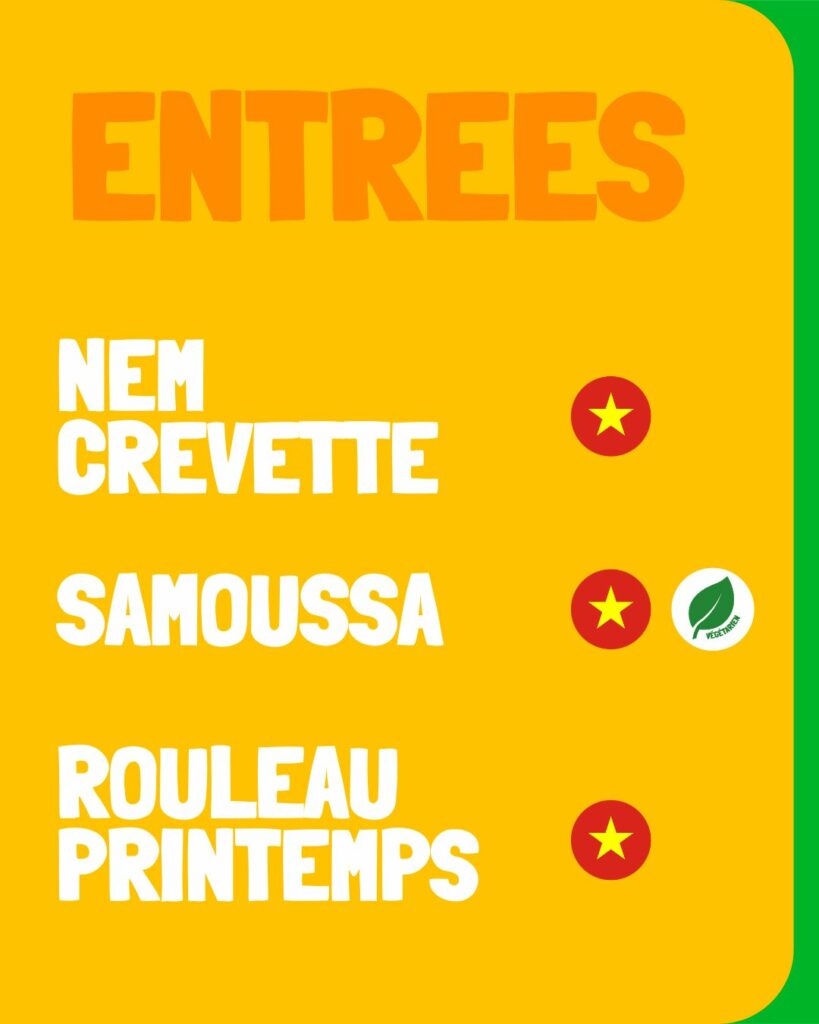 Vous trouverez une cuisine qui s’inspire des grands classiques de la cuisine asiatique mais aussi des plats typiques de la street food populaire du Laos, de la Thaïlande en passant par le Vietnam et le Cambodge.