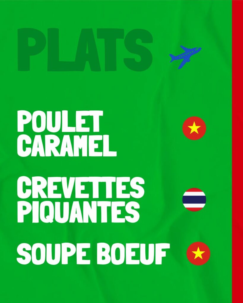 Chaque semaine nous vous proposons un nouveau choix varié d’entrées, plats et desserts pour vous faire voyager.